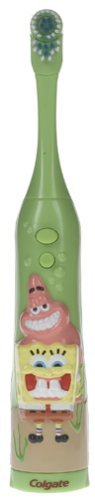 Colgate Kids Sponge Bob Powered Toothbrush, Extra Soft Bristles, small rotating head that cleans teeth and gently sweeps away plaque, extra soft bristles protect gums, brush lays flat for easy toothpaste application, 2 replaceable AA batteries and available in SpongeBob, Patrick and Gary. Read more...